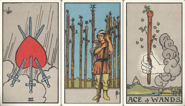 卜牌:宝剑三- 权杖九+ 权杖首牌+