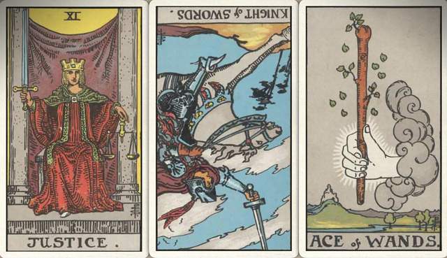 卜牌:正义+ 宝剑骑士- 权杖首牌+