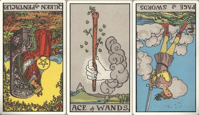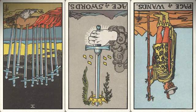 卜牌:宝剑十- 宝剑首牌- 权杖侍从-