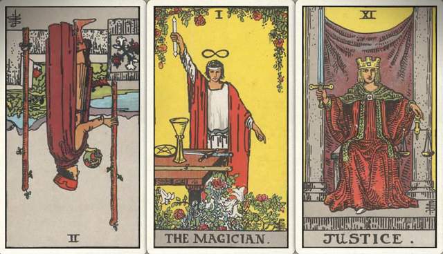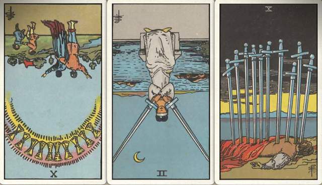 卜牌:圣杯十- 宝剑二- 宝剑十+
