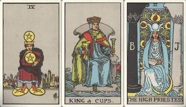 卜牌:星币四+ 圣杯皇帝+ 女祭司+