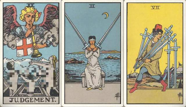 卜牌:审判+ 宝剑二+ 宝剑七+