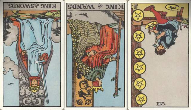 卜牌:圣杯七+ 权杖四+ 宝剑五+