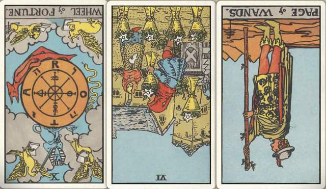 卜牌:命运之轮- 圣杯六- 权杖侍从-