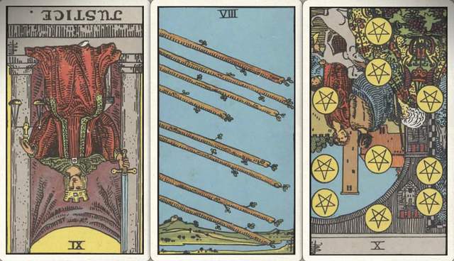 卜牌:正义- 权杖八+ 星币十-