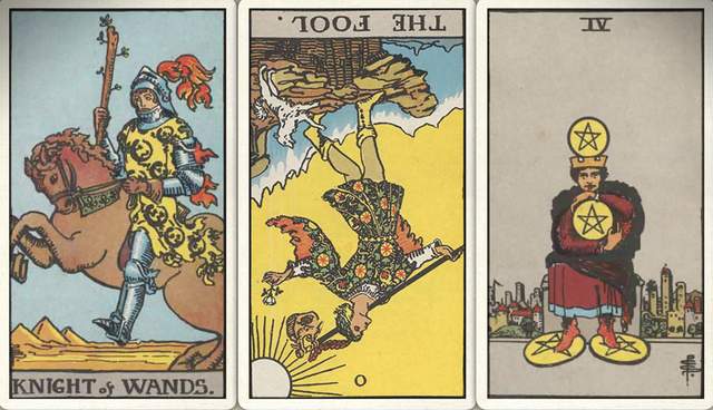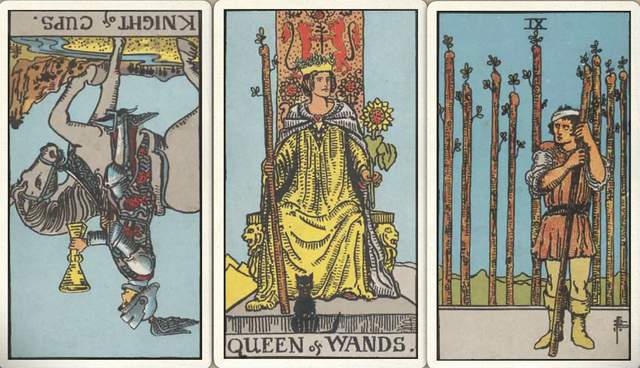 卜牌:圣杯骑士- 权杖皇后+ 权杖九+