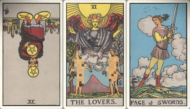 卜牌:星币四- 恋人+ 宝剑侍从+