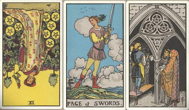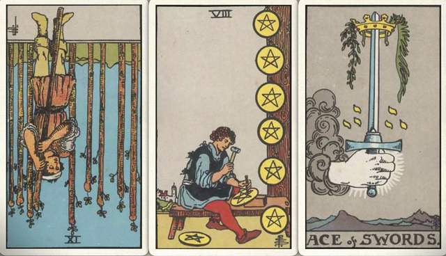 卜牌:权杖九- 星币八+ 宝剑首牌+