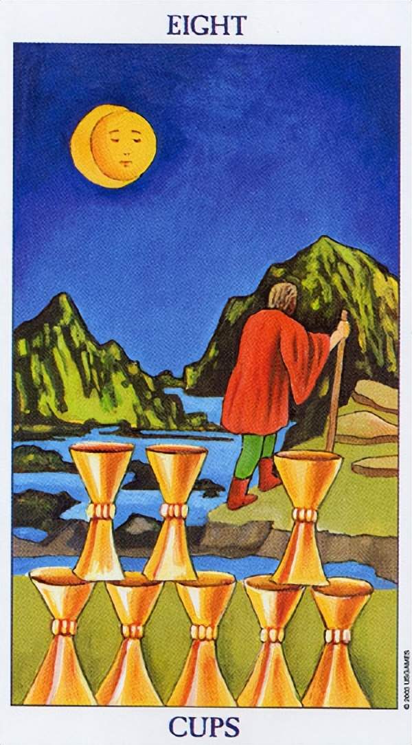 分析:牌面上的人拥有八个代表感情的圣杯,且正走向黑暗的远方。这很直接的说明了当你们感情很好,或者他确实很爱你的时候,他是很愿意为你付出的,甚至即使他经济方面有所困难,他也会努力来满足你的要求。但是他的付出真的会和他对你的感情相关!所以,如果你发现他没那么愿意为你付出,又或者在一起一段时间后,他慢慢愿意为你花的钱变少了,那或许也暗示了他对你的感情下降了,没那么喜欢你和爱你了哈!