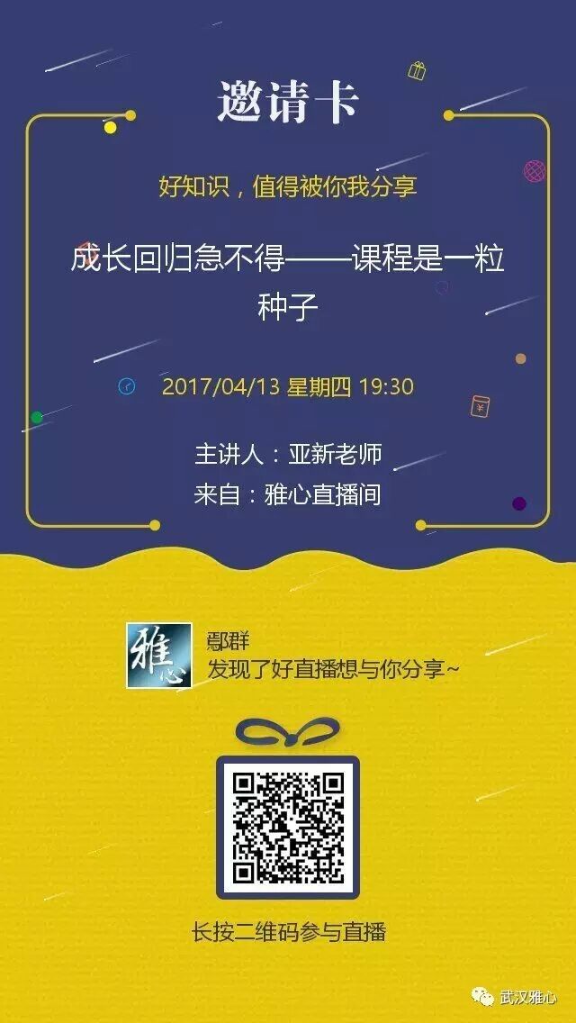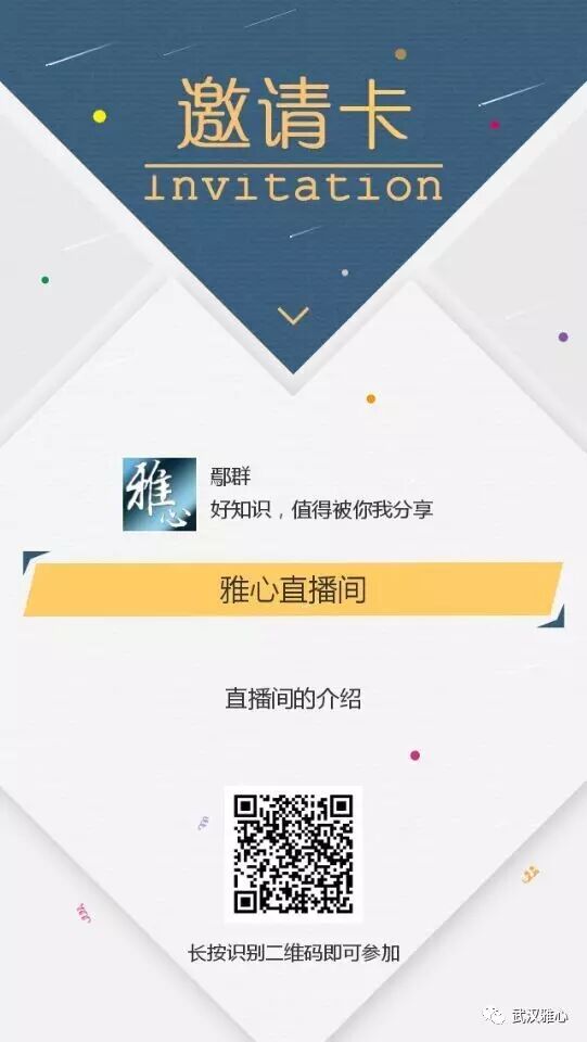 长按邀请卡二维码,即可进入直播和关注雅心直播间