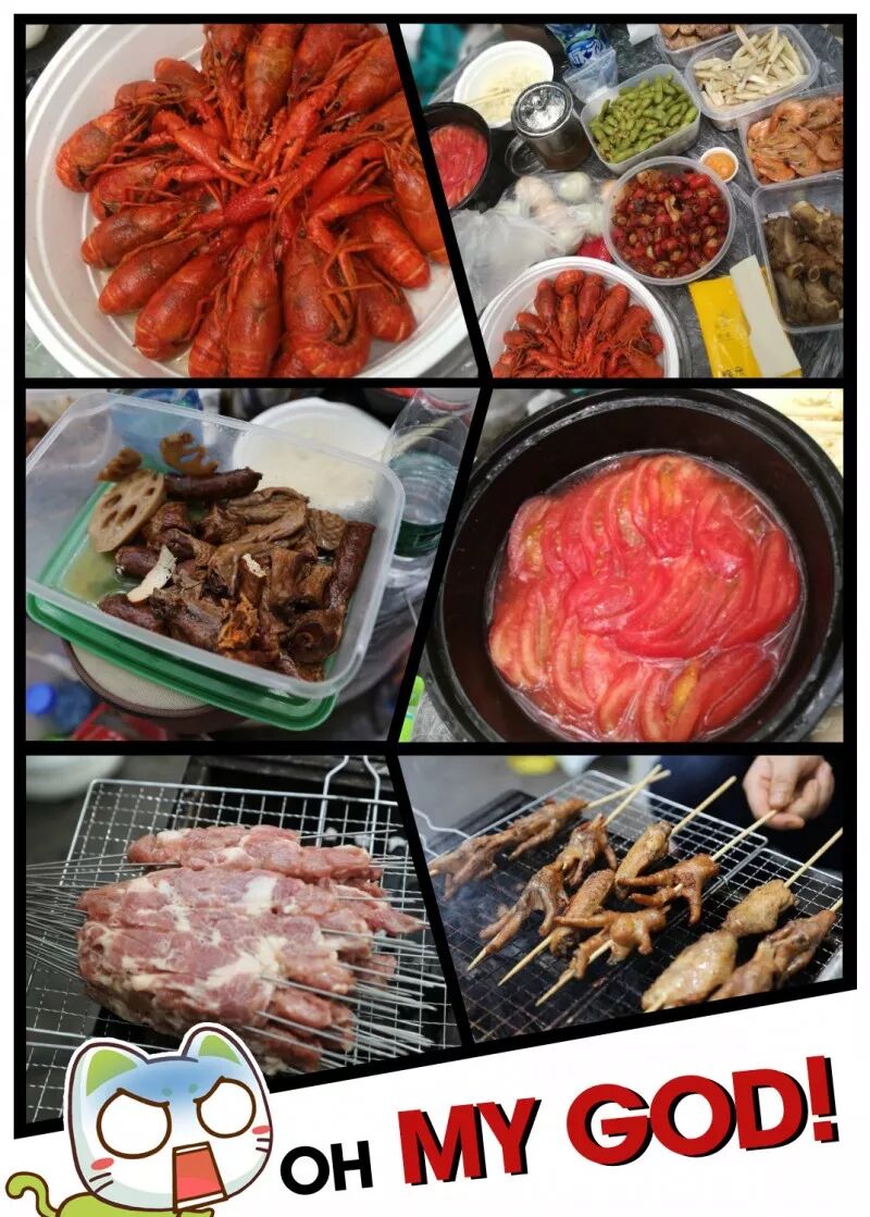 而我完全是东边拿一串肉串,西边拿一串烤肠,每一桌的美食都常了个遍,非常感谢大家主动把好吃的拿出来给我,真的很感动!
