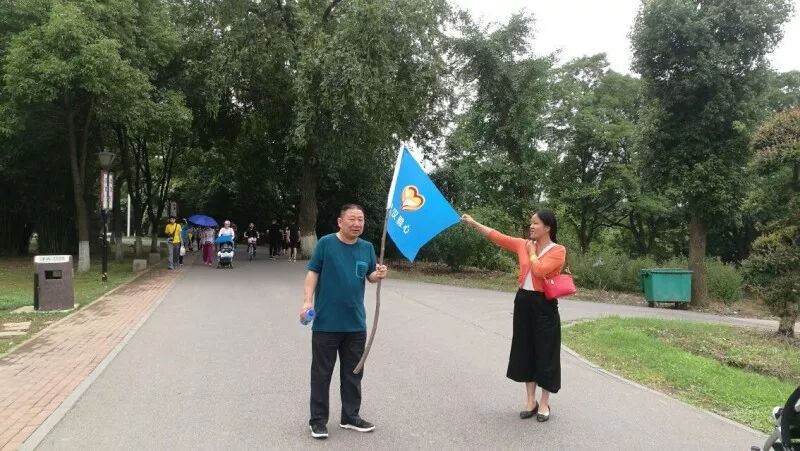 耀光帅哥,他看到旗帜没有杆,就去想办法找来树枝把我们的旗子插起来,有保安看到拿旗子的崔大哥还开玩笑的说我们的旗杆是森林公园的