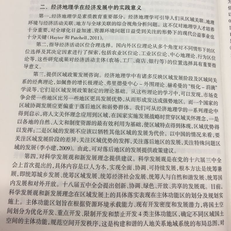 原第四节“经济地理学在当今世界重大实际问题的贡献”,修改为“经济地理学在经济发展中的实践意义”,内容表述较第二版有所修订,建议参考第三版(如下图)。