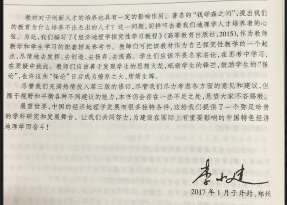 李小建第三版《经济地理学》于2018年6月7日