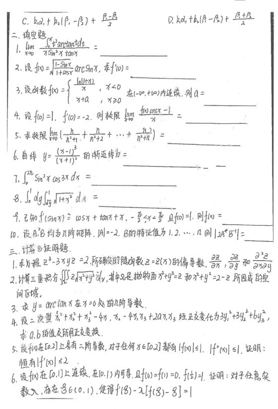 下面这个是华东16年602高等数学(B)的真题,学弟学妹们可以先看下数学的一个难度情况