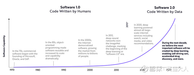 过去20年里,互联网使全球股票市场的市值增加了13万亿美元。而截至2020年,深度学习就已经创造了2万亿美元市值了。A