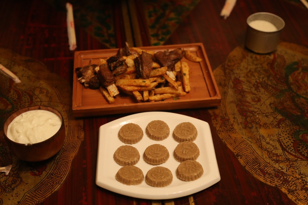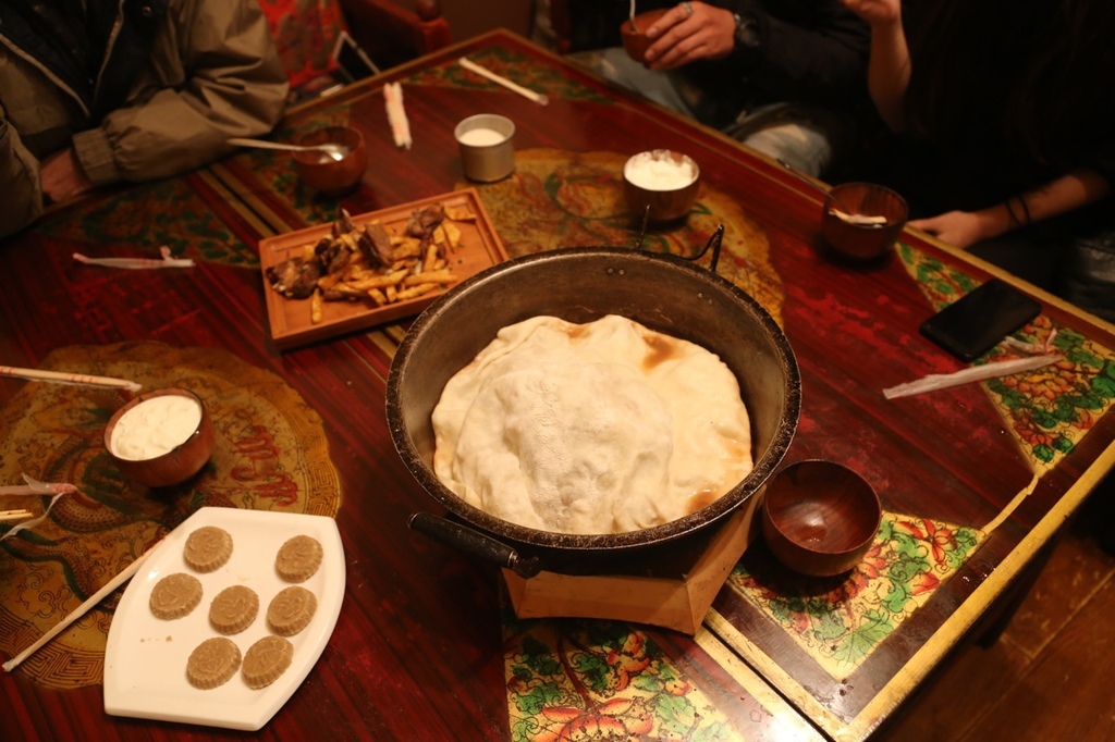 上面那個是羊排炸土豆,下面應該是什麼青稞餅之類的。