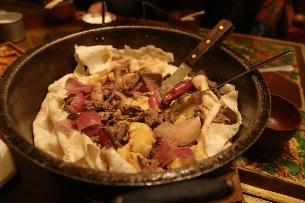 原諒我時日已久我真的不記得那些菜的名字,但這就是牛肉烤土豆,旁邊的就是麵皮。其實味道還挺西式的(笑)