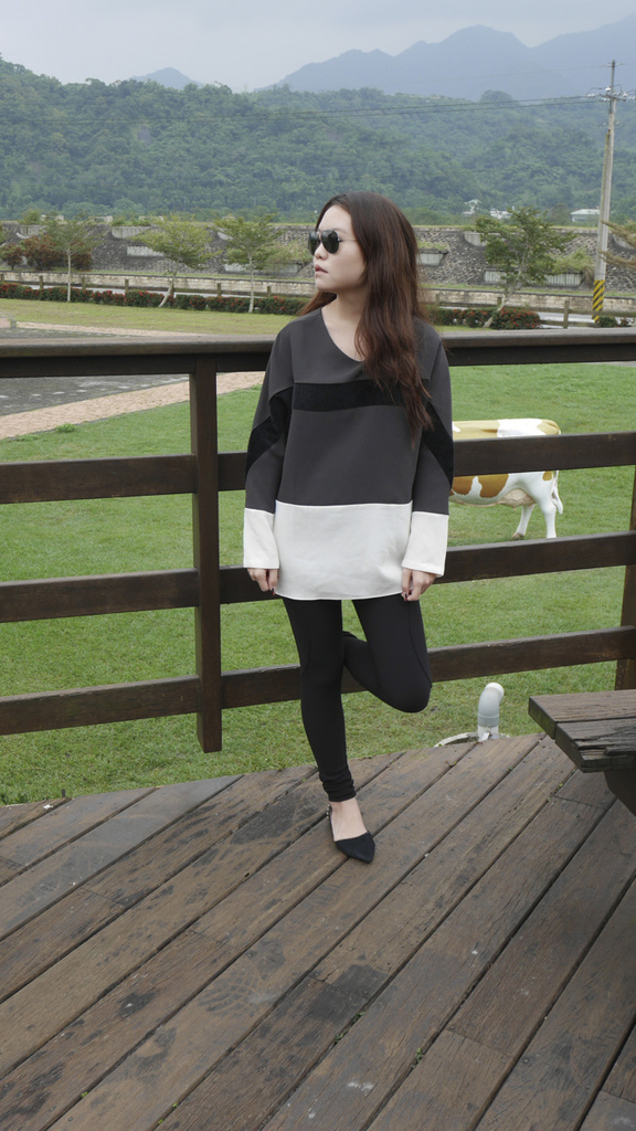 回到穿搭,當天的搭配非常簡單,就是一件oversize的上衣。我喜歡它簡潔的配色,跟異材質的拼接。