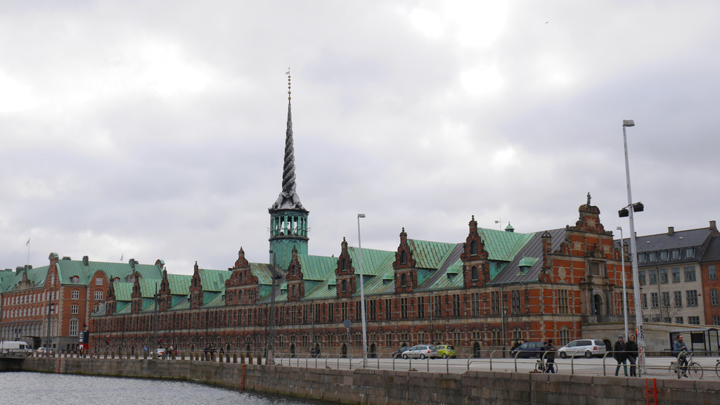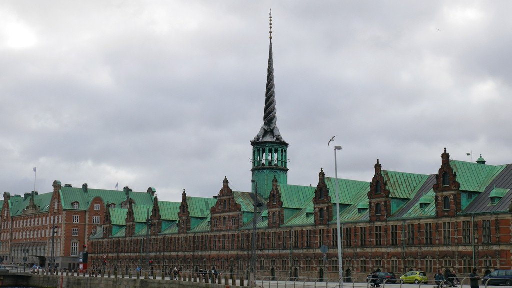 下圖這棟建築我真心覺得他很浮誇,這是根本哈根證券交易所,建於1620年,是丹麥最古老知名的建築之一。他的屋頂是兩條盤旋的巨龍,直沖天空。我個人覺得非常特別。。