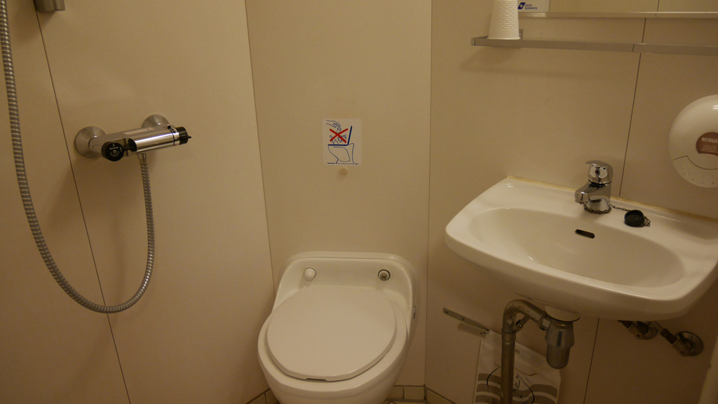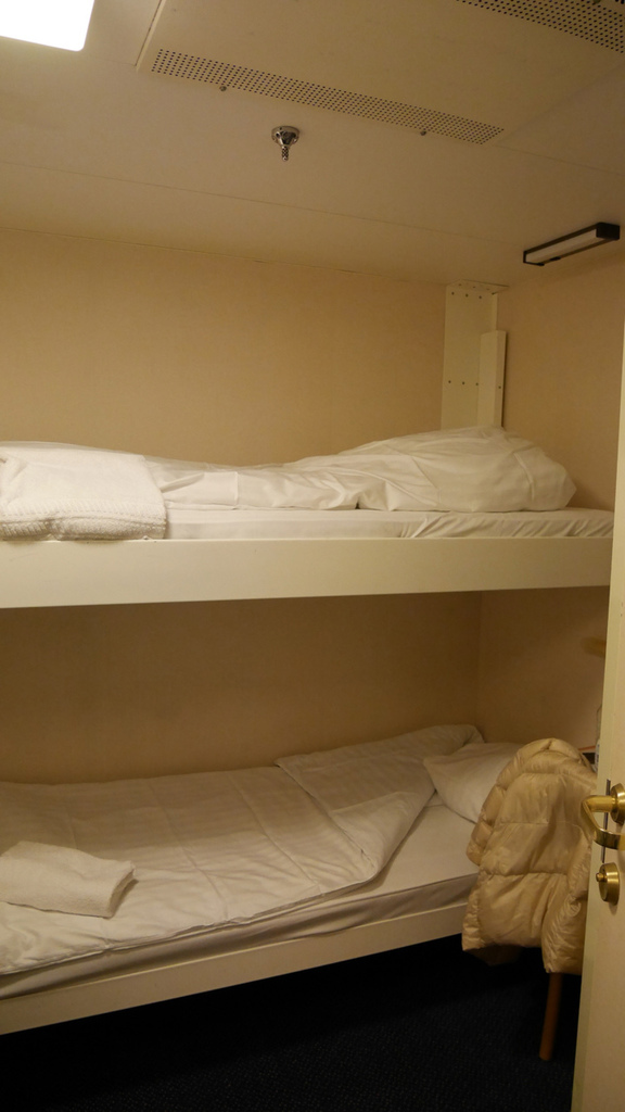 船上的雙人間。下次如果再去搭船,會選擇單人間。因為單人間有窗戶可以看海景。但想一想其實一直看海反而會暈船。我個人其實是覺得船上滿舒適的,但也可能是我之前搭火車旅遊習慣了,稍微升級了就覺得很滿足(笑)