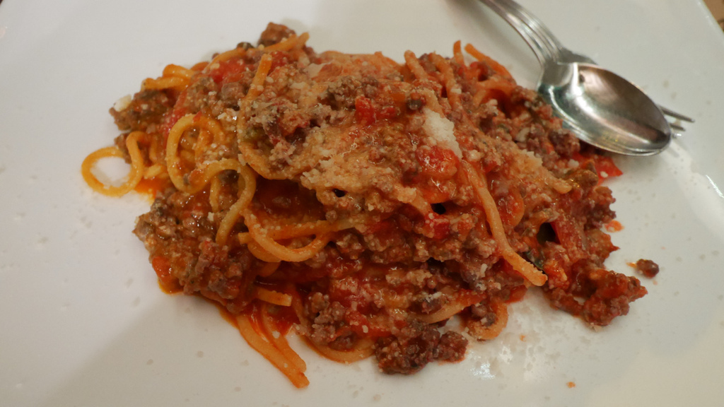 我好喜歡這道番茄肉醬義大利麵,這是我這次吃到最好吃的意大利麵,雖然只是簡單的配料卻不知為何好迷人啊!!! 話說意大利人比較偏好番茄底的義大利麵,很少會在餐廳看到青醬口味。而且意大利人就覺得自己是美食王國所以不歡迎異國料理,但我朋友說他們只是愛吃番茄醬而已(笑)
