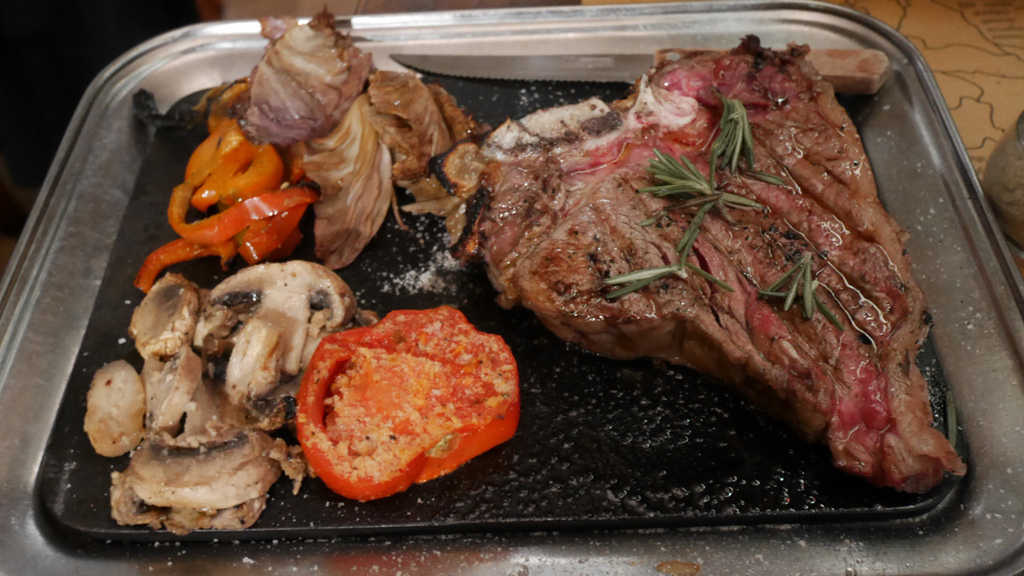 意大利有很多好牛排可以吃,但熟度要先跟他們說一下,不然都上三分熟實在讓我有點困擾。但肉質很嫩完全符合想要大口吃肉的我們啊!!