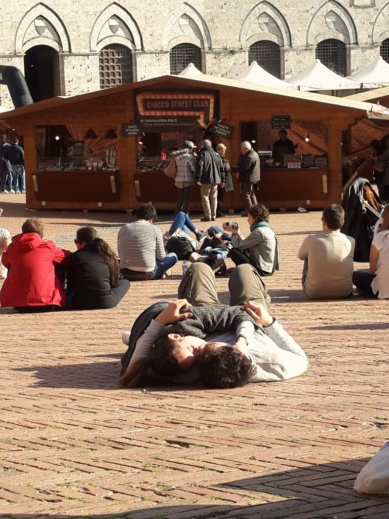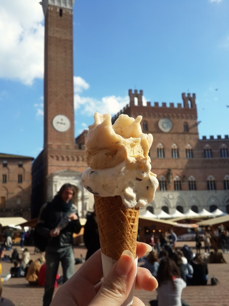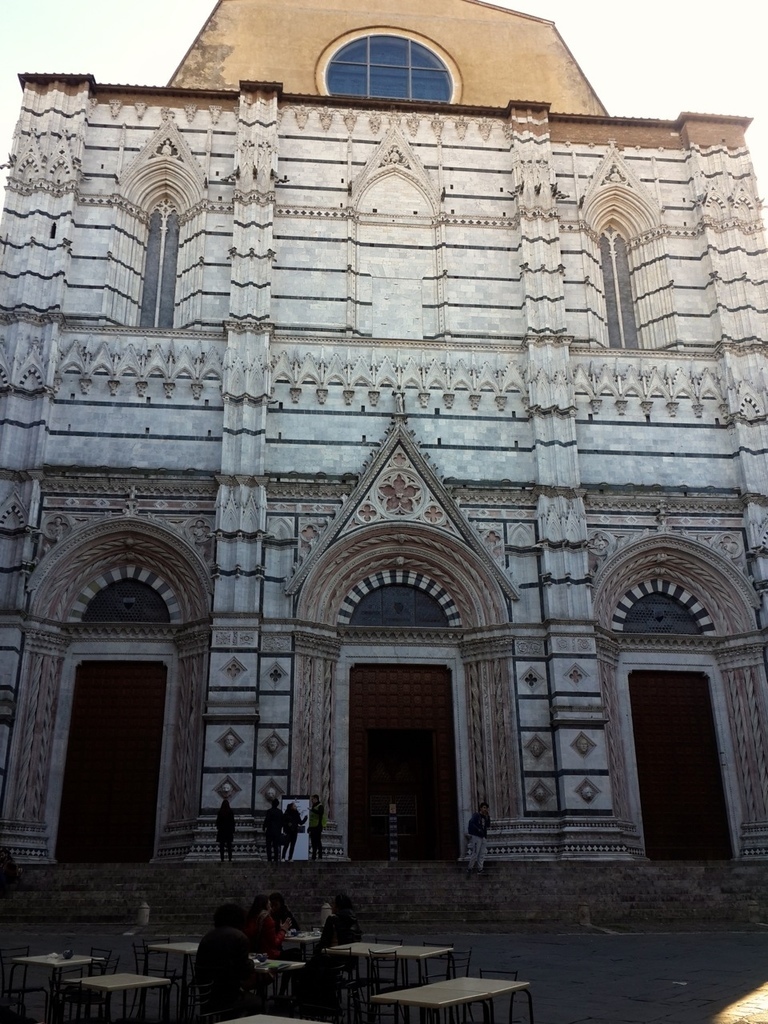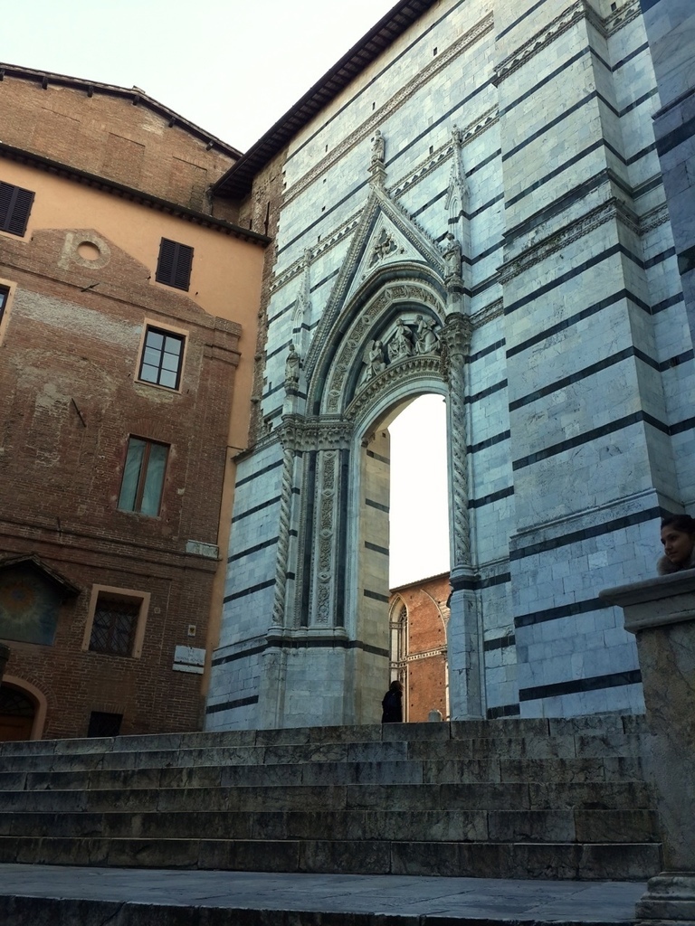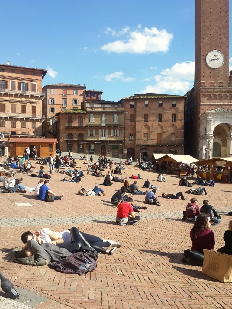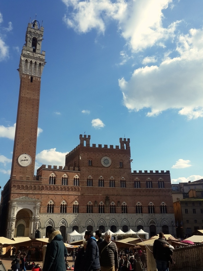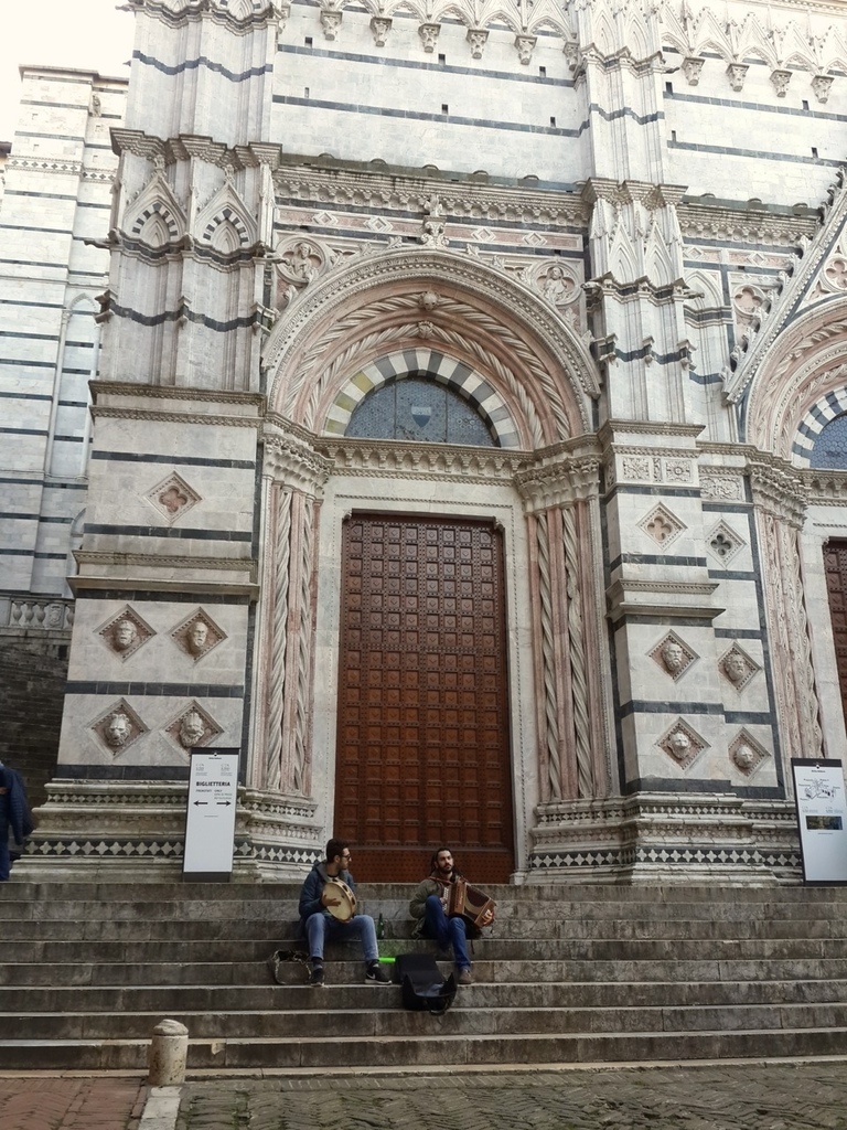今天跟大家分享的是位於托斯卡尼的一個小鎮,Siena。這是一個美麗的山城,我去過很多的小鎮,每一個都有不同的風情,當天,是從佛羅倫斯當天來回,出門的時候,青旅的老板娘突然把我們叫到廚房,拿了一瓶自家釀的紅酒,跟我們說:「出去郊遊就是要喝酒阿,這是我們自己釀的,只給你們噢,不可以跟別人說喔。」十分可愛,即使過了這麼久,回想起來還是覺得很溫暖,就像我說過無數次一樣,去一個地方旅行,會讓你永久記得的,是你所遇到的人。這些看似過客的人,卻為你的旅程譜下最美好的風景。 下車的時候,我跟朋友都驚訝於這個位於深山的小鎮裡,居然還有LV(笑),不愧是意大利,精品無所不在。不得不說,這裡是一個已經高度開發觀光的城市,但還是值得一來。不單是因為這是聯合國教科文組織上的世界文化遺產,也因為這個城市的獨特氛圍。我還記得,在經過百花教堂的時候,有兩個人坐在階梯上,演奏樂器和唱歌。那歌聲很美好,聽了讓人想跳舞,即使語言不通你依舊能跟著哼唱。(就是圖中的那兩個人)