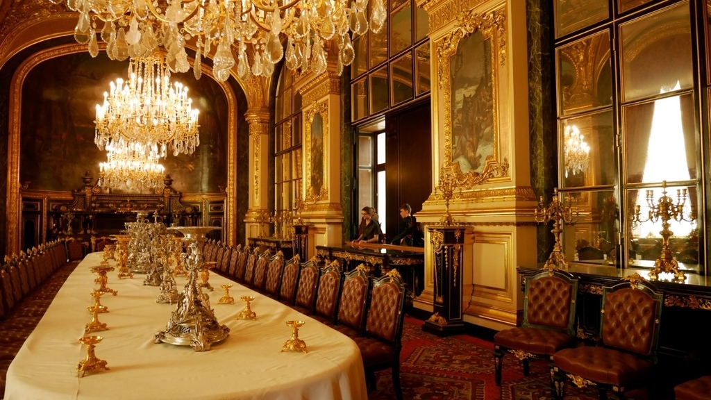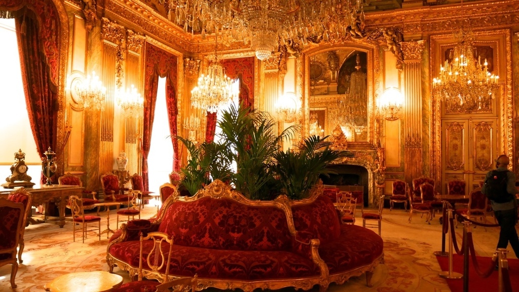 由一連串的豪華接見廳組成,大理石裝飾、繪畫、雕刻、錦緞帷帳、鍍金木頭家具、水晶吊燈等,是少數保存下來的皇家奢華排場見證。