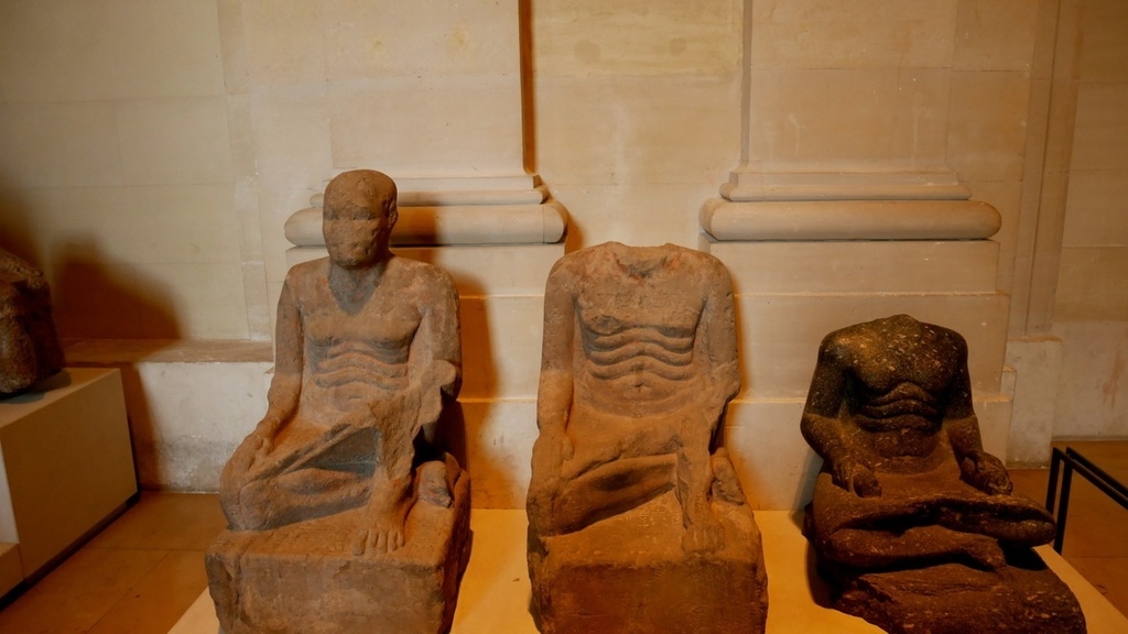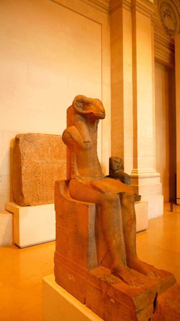 就讓我們進入下一個區塊吧。埃及區,這也是我很著迷的一部分。我覺得在歐洲的博物館常常可以看到很多埃及文物,這點真的令我很羨慕。因為我一直都好想好想去埃及,對埃及文明的神秘面紗也一直有高度的興趣。雖然沒有真的去研究,但看看這些古物還是覺得很滿足。法國與埃及考古學素有淵源,法國人對古文明的狂熱又從拿破崙親自出征埃及一事最為明顯。雖然埃及一役鎩羽而歸,但是,當時隨行的百人學者團所做的記錄採集及後來的彩繪圖錄發表一次又一次地引發了歐洲對埃及的狂熱。同時,又在法國語言天才商博良(Champollion)的研究下,破解了象形文字之謎。而商博良正是羅浮宮埃及館第一任館長,羅浮宮的埃及收藏就是他開始奠下的基礎。