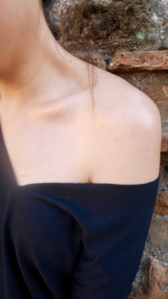 有看到鎖骨跟肩膀上的光澤感嗎?就是在追求這個!