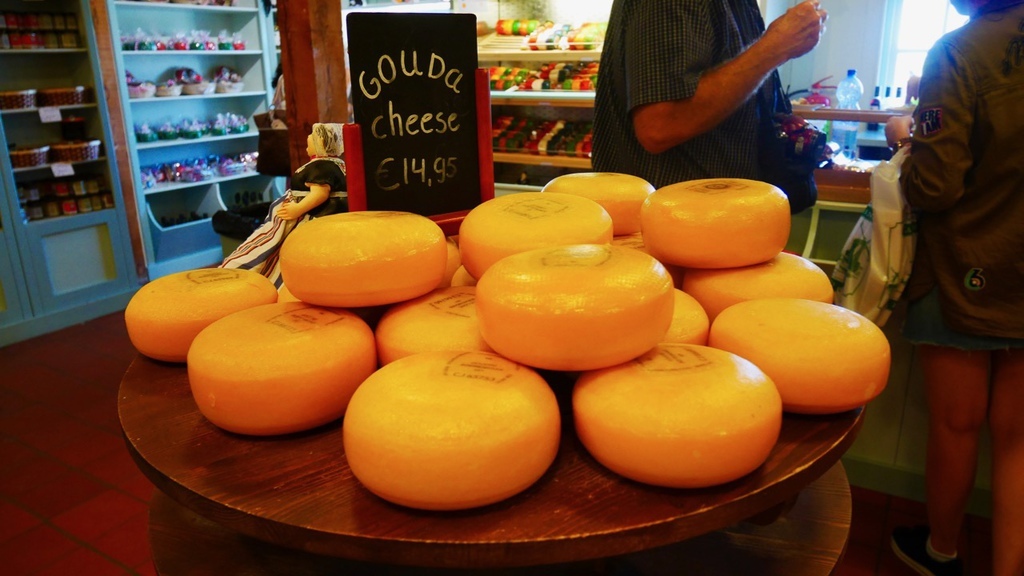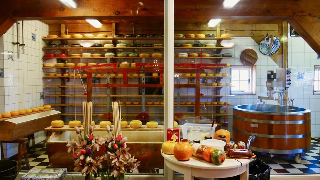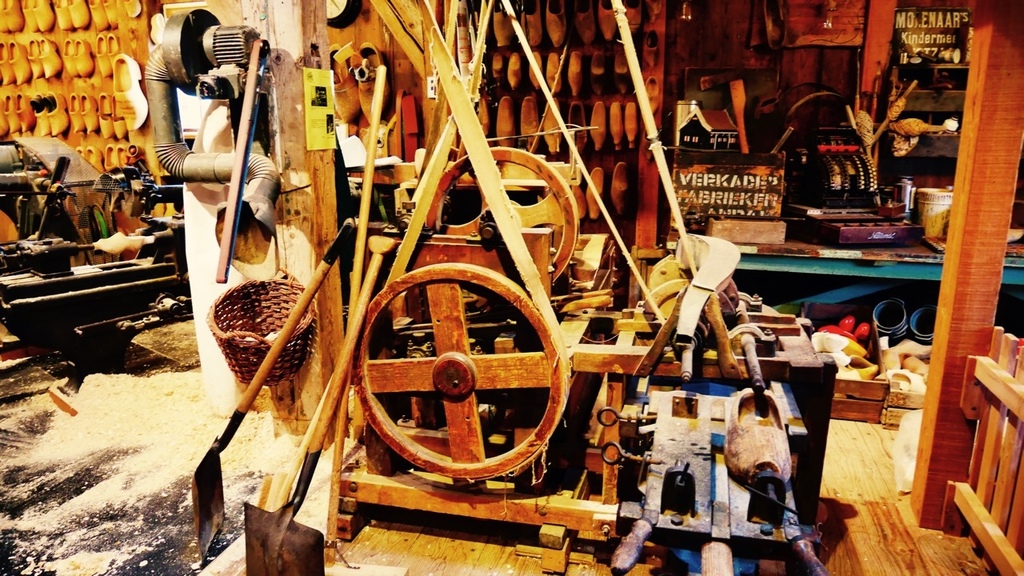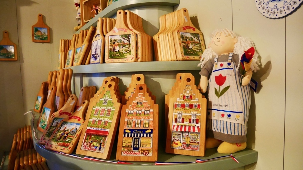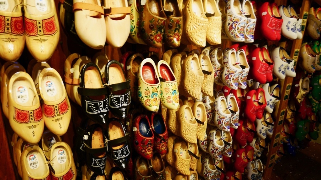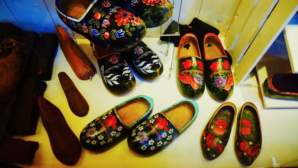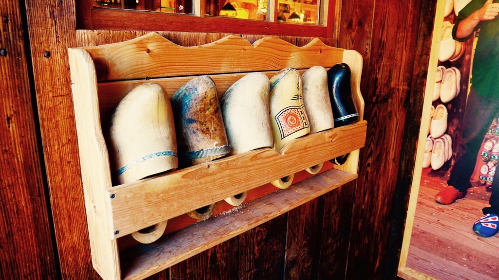 今天,我們又要繼續在風車村的另一趟旅程,起司工廠以及木鞋博物館。歐洲人愛吃起司這點沒什麼好質疑的,我的法國室友不管吃什麼都要在上面加一堆起司。所以我們就把重點放在木鞋身上。幾乎所有來荷蘭玩的人,伴手禮都會帶一雙小木鞋回去,因為這是荷蘭獨有的紀念品。事實上,木鞋成為紀念品僅有五十年的歷史,往前推數百年,木鞋對荷蘭人的生活有極大的影響以及實用價值。因為荷蘭的光照時間短,地表潮濕,木頭具有較好的防潮性能,兼且原料便宜,取得方便,所以中世紀的荷蘭農民用木頭自製的這種像小船一樣的鞋子,可以有效保護腳趾,提供勞動防護。而冬天時,在鞋內填進套草,既可防禦寒冬,又舒適耐穿,因此木鞋一代代留傳下來,直到今日。