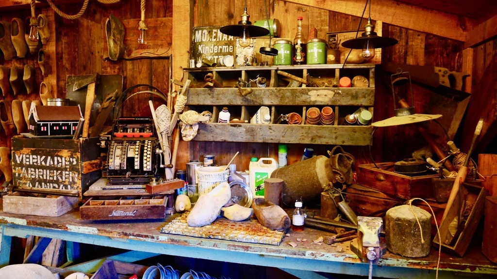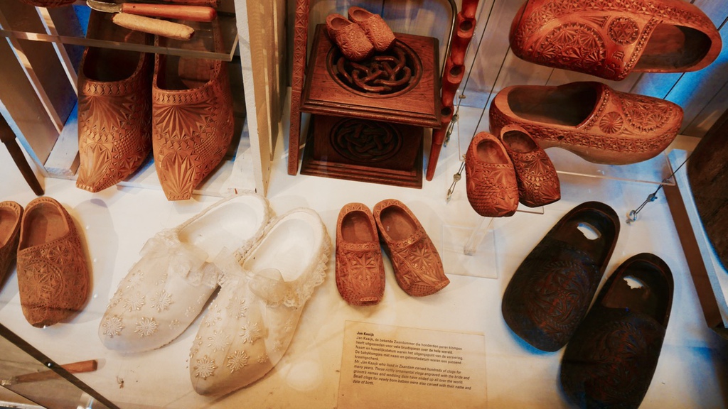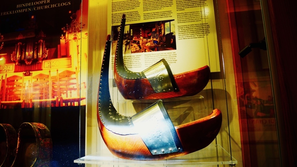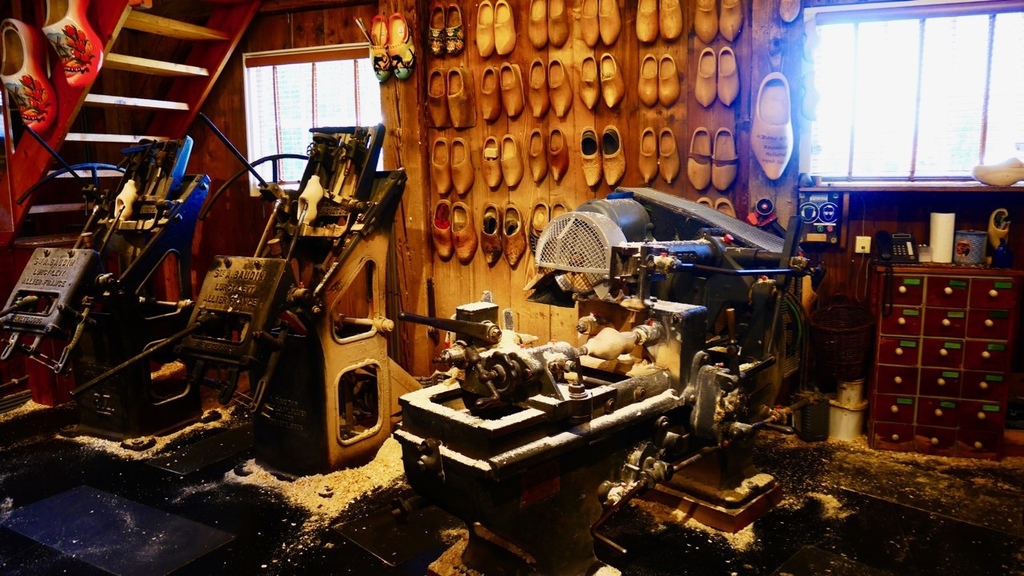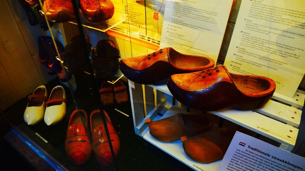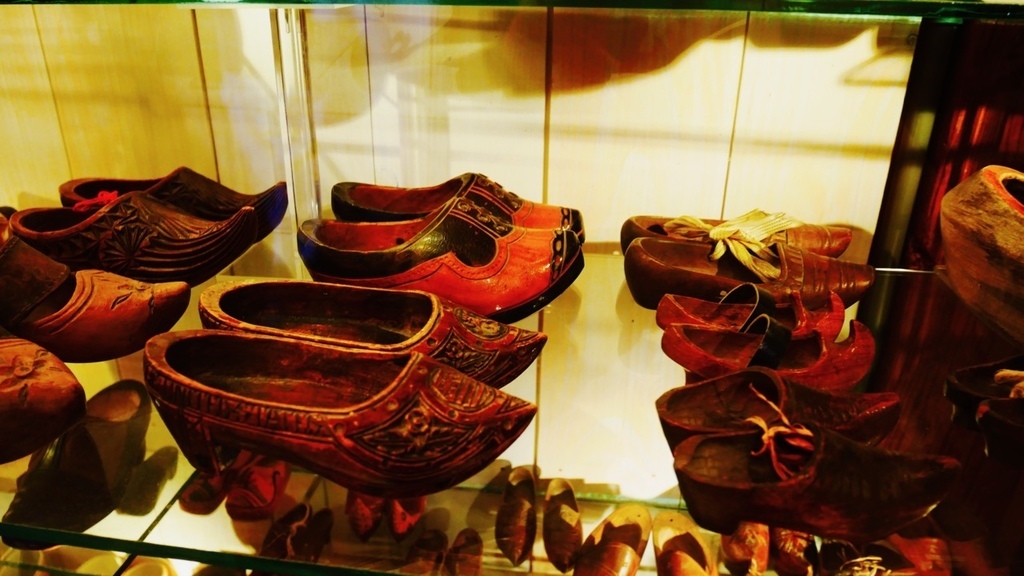 來了風車村,最重要的就是要參觀他們的木鞋博物館,裡面展示了各式各樣精美的木鞋,以及製作過程。在門口,有一雙巨大的木鞋,供遊客拍照。