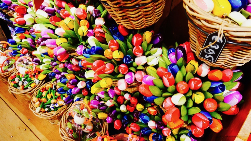 除了木鞋也賣很多木頭做的鬱金香