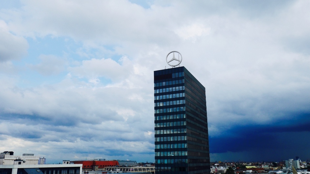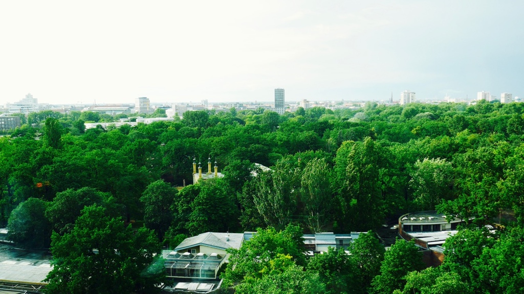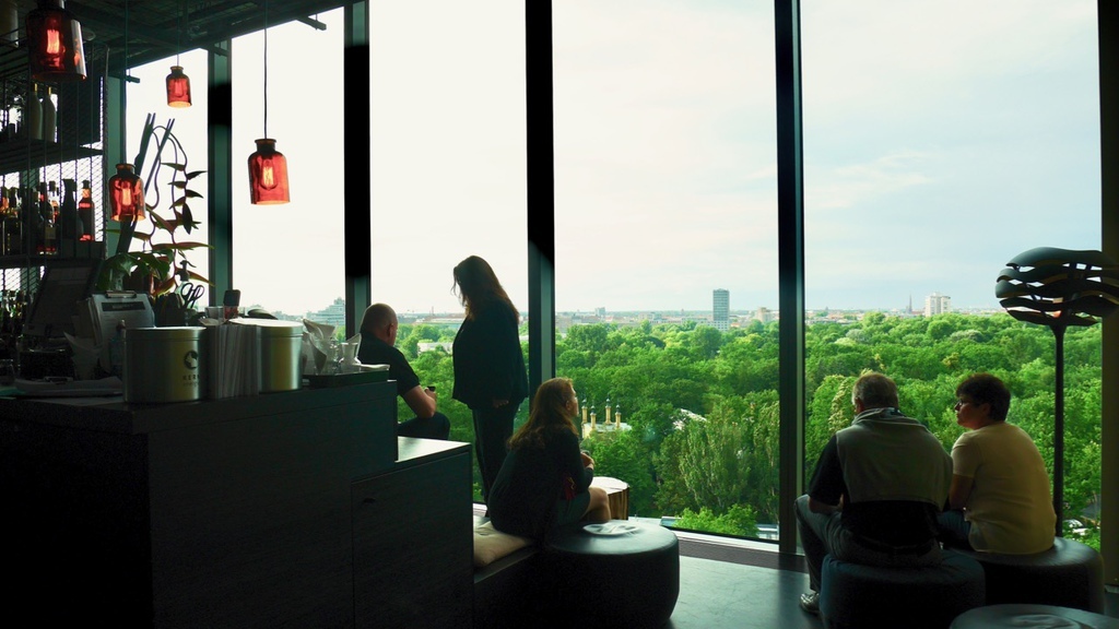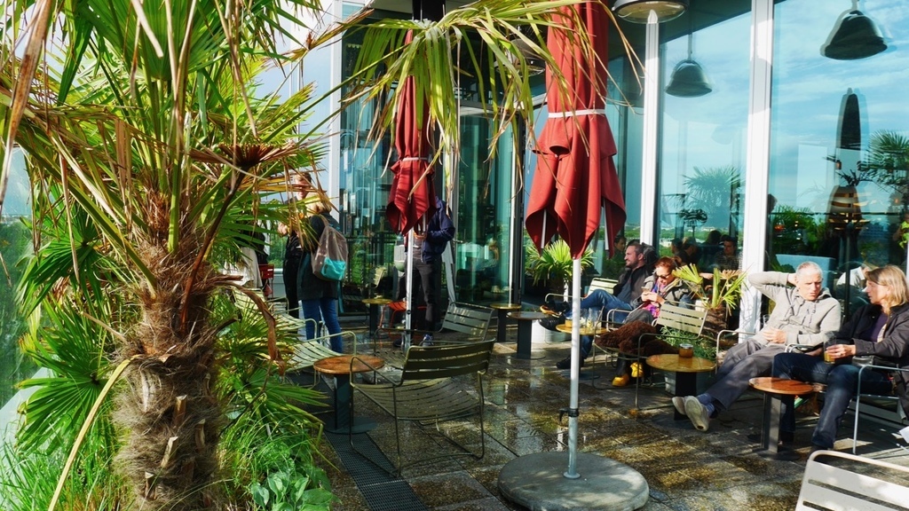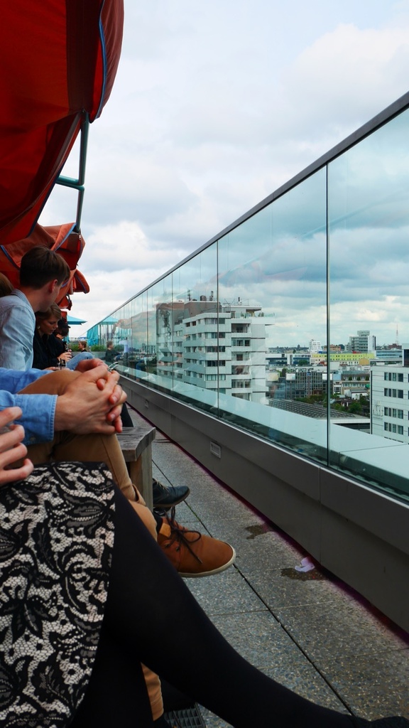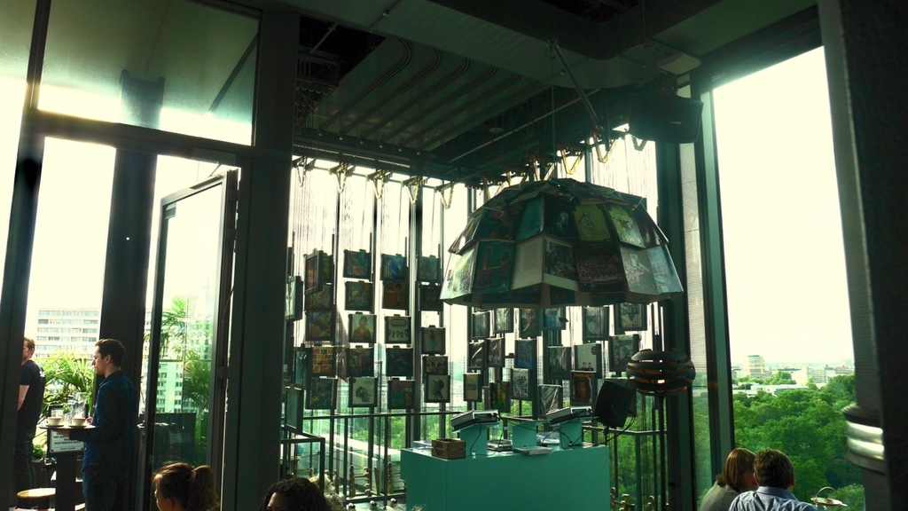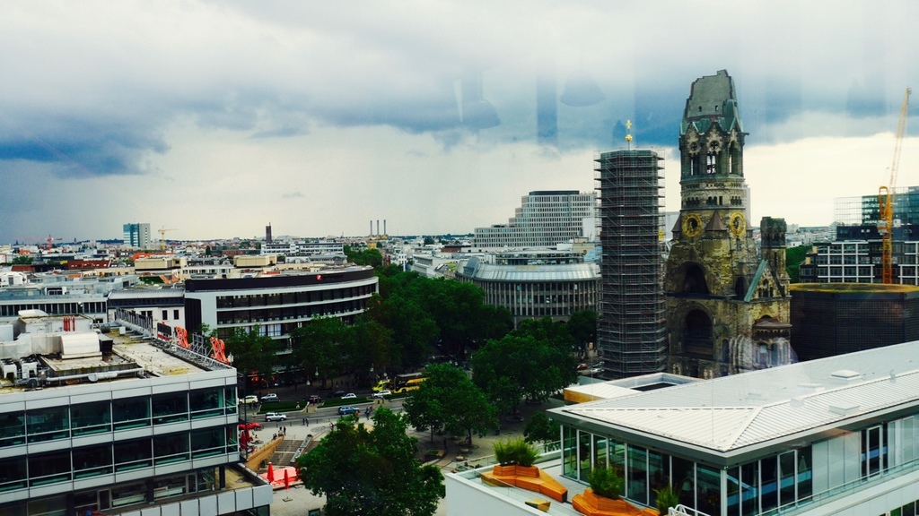 而且,居高臨下的風景還可以收下其他的柏林街景,像是完整的威廉皇帝紀念教堂。這裡分室內和室外,上來的時候滿滿的人,