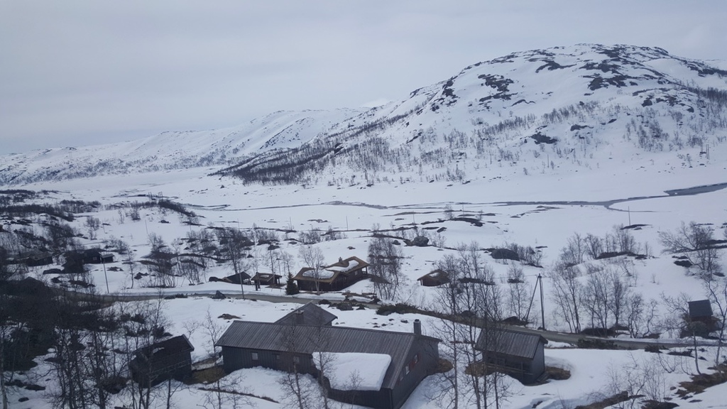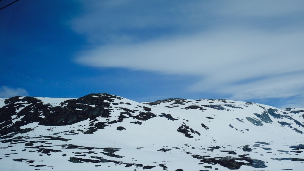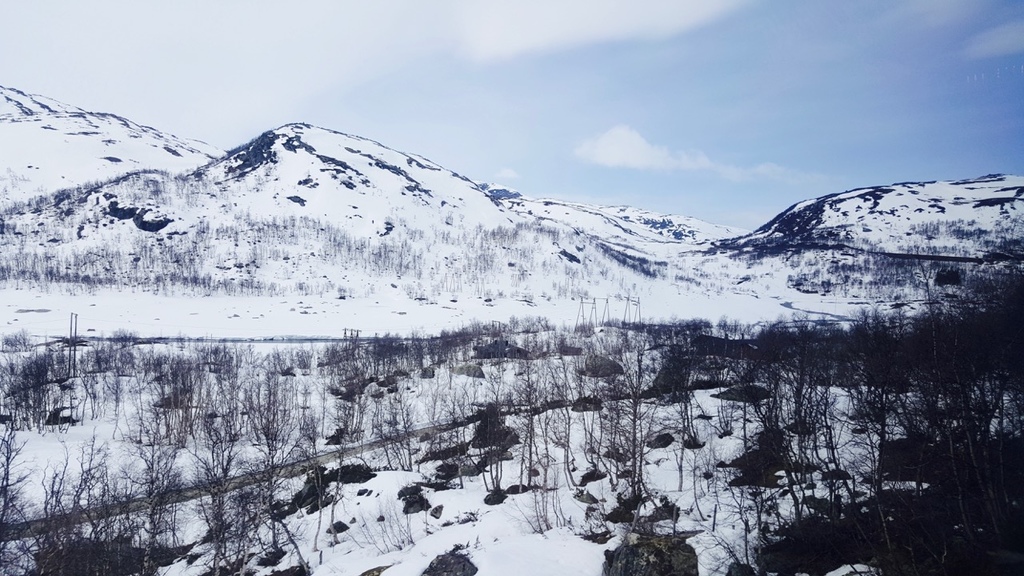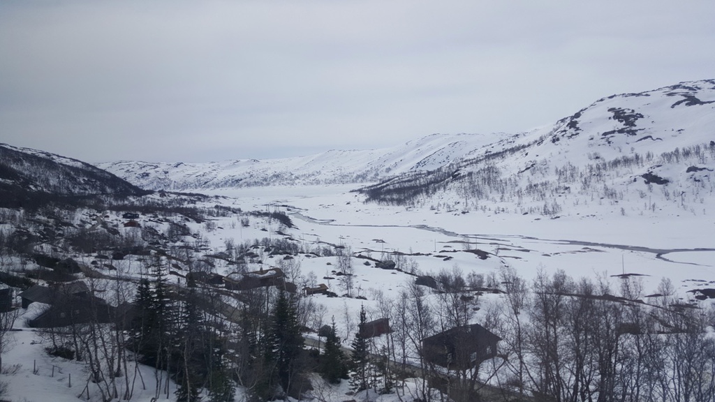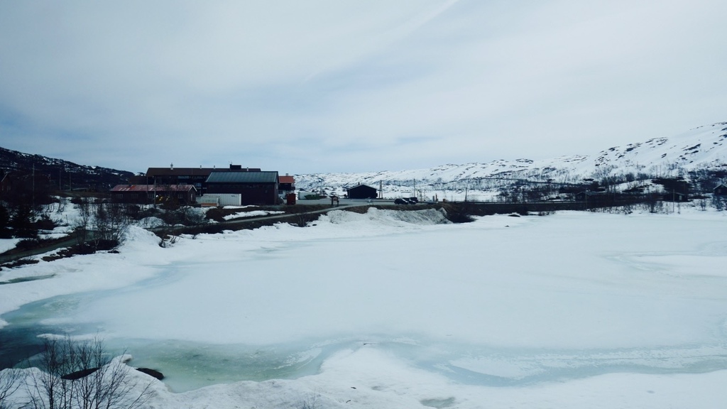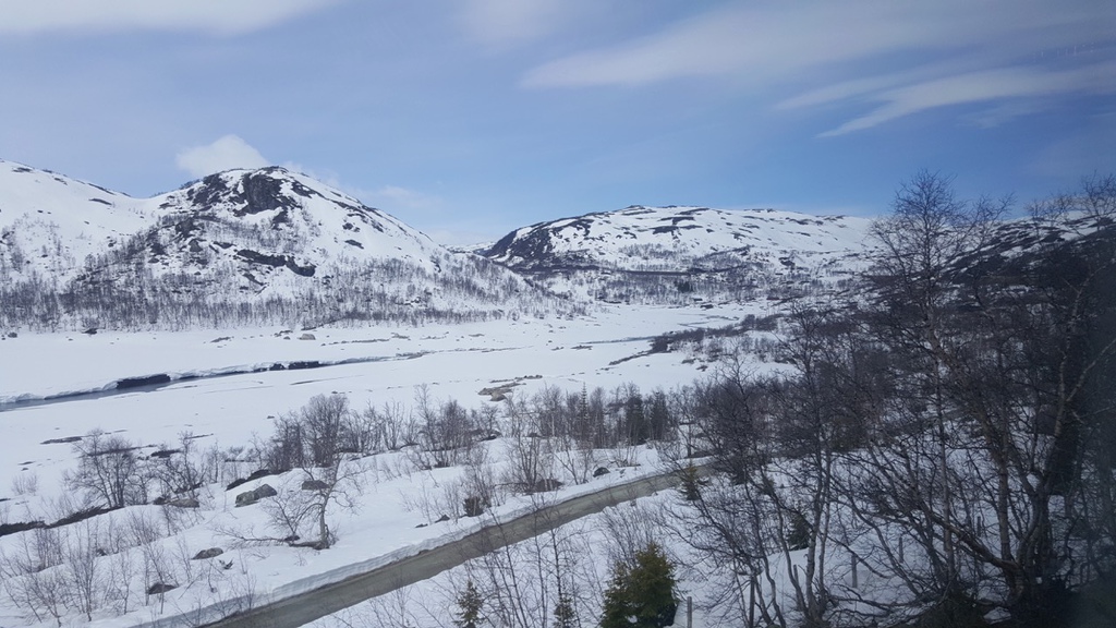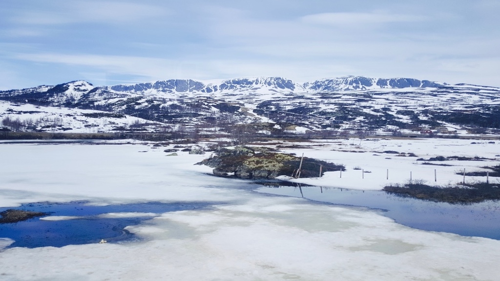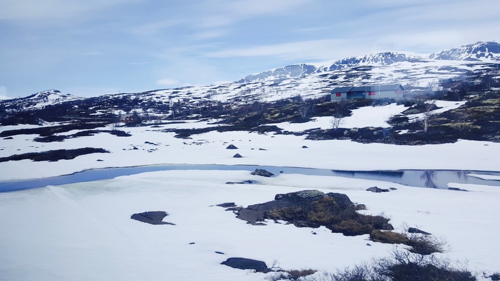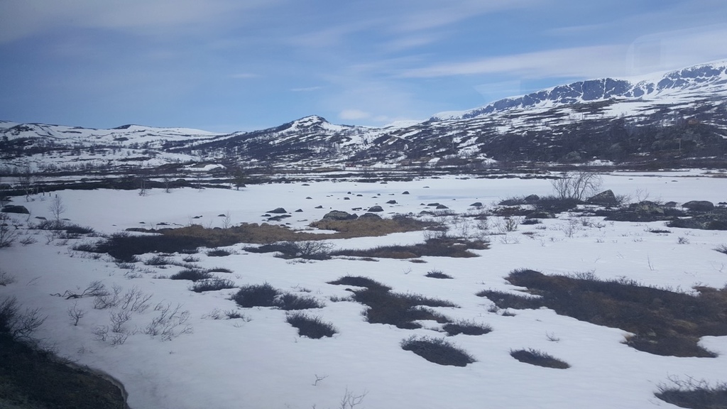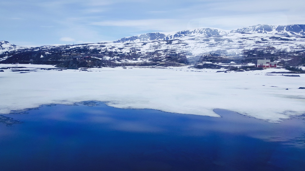 從奧斯陸到麥達爾要坐六個小時,雖然當時是五月,但很多地方還是呈現冰封千里的景色。