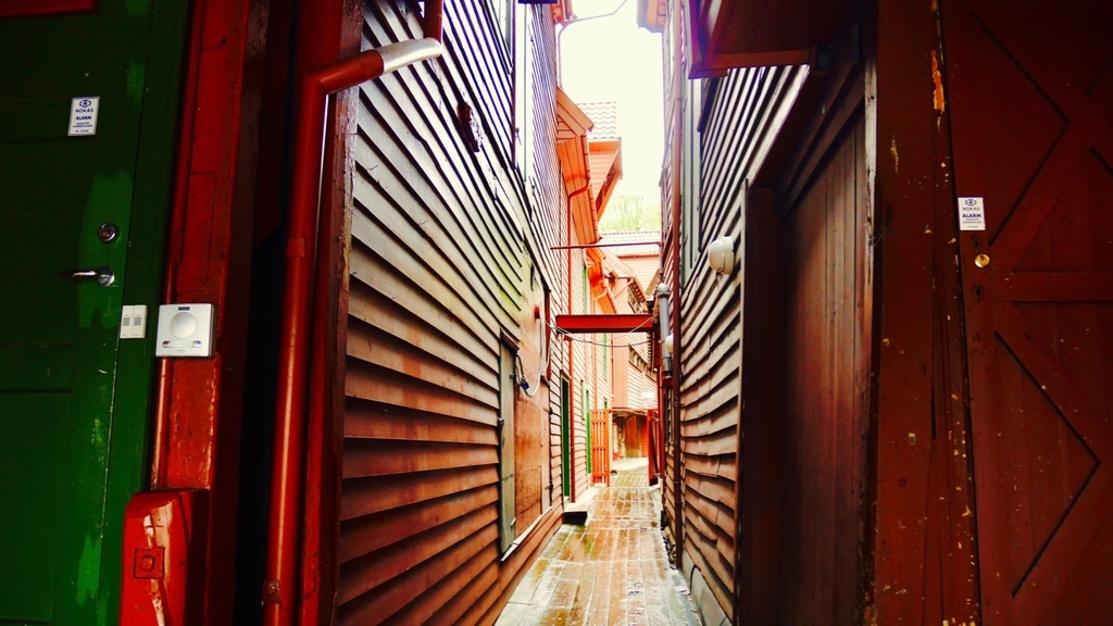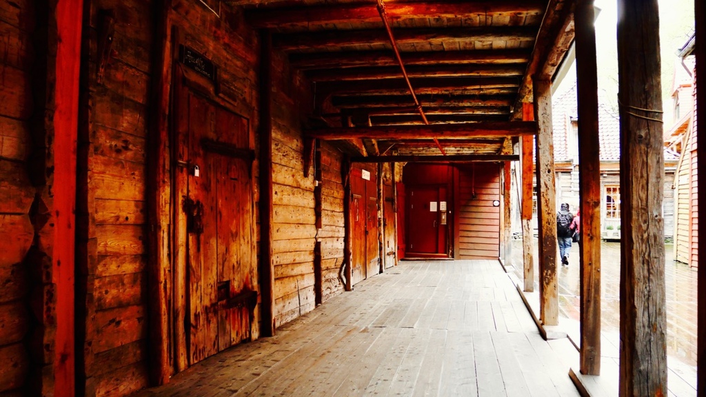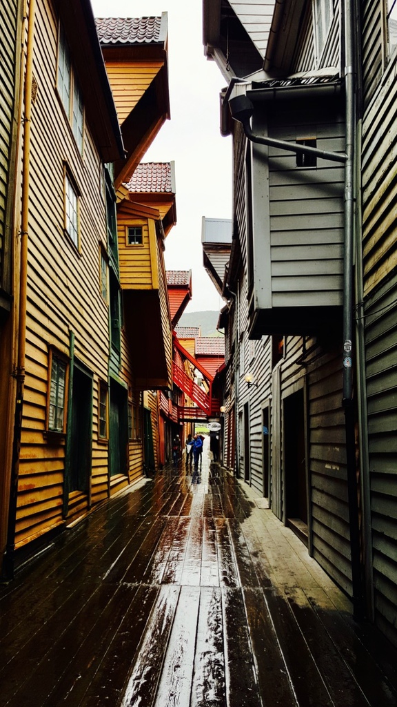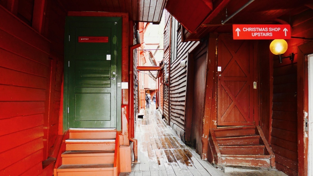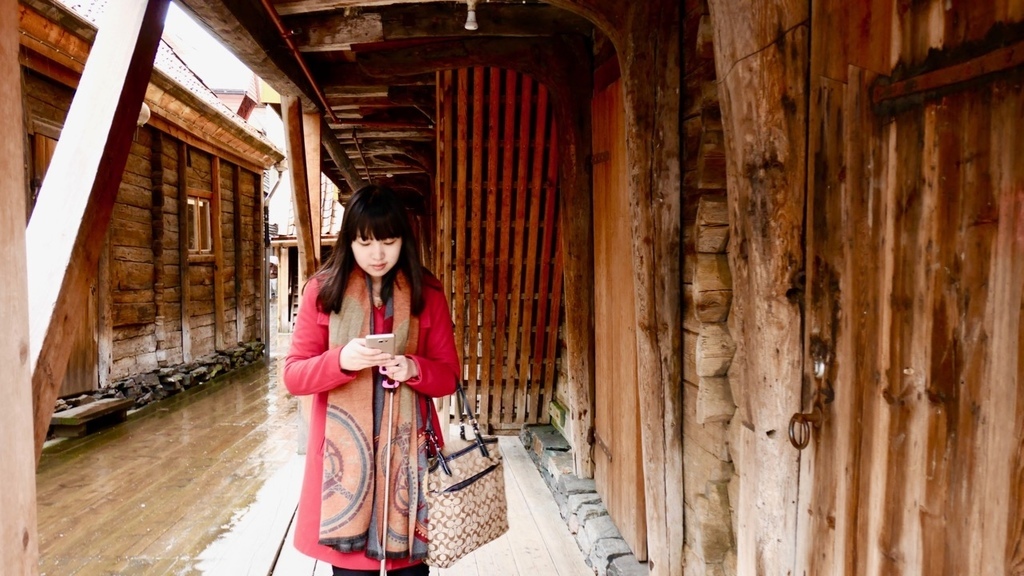 回到旅遊本身,Bryggen在挪威語的意思裡,就是「碼頭」(這裡的對面就是布呂根碼頭)。14世紀時,這些木造倉庫是商人們存放漁獲以及穀物的地方。而現在則是一些藝術家的工作室、紀念品店的聚集之地。那天,我和我朋友在裡面拍了N張照片,因為真的是太好拍了,木造建築在畫面上有一種溫馨復古的氛圍,但這些建築也有一些歲月了,所以形成一個歪歪斜斜的的樣貌,我一度想說為何我拍出來的照片都是歪的(笑)在這整排木造房屋的背後,其實是一些蜿蜒的小巷,鑽進去會發現不一樣的天地。我就發現了一間畫室,裡面袖珍屋的展示是我最喜歡的系列。但當天有些地方在整修,所以我們也只有看到部分的樣子。夏天真的是歐洲整修古蹟的旺季,因為冬天長年下雪,所以只能把握夏季了。
