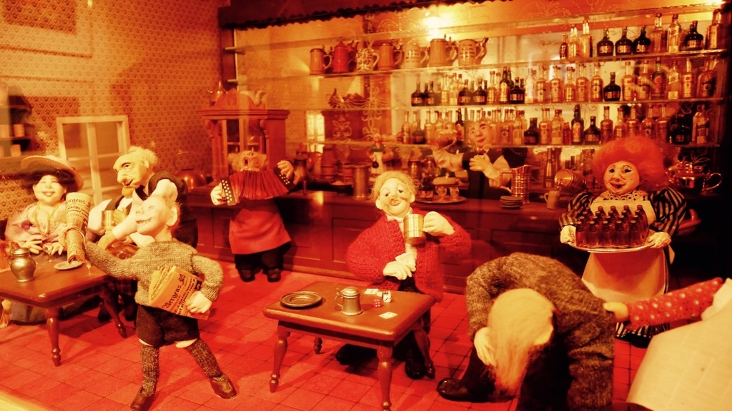 找到一排袖珍屋,裡面的人偶真的超酷的,做得非常精緻而且唯妙唯俏,主題也都很有趣