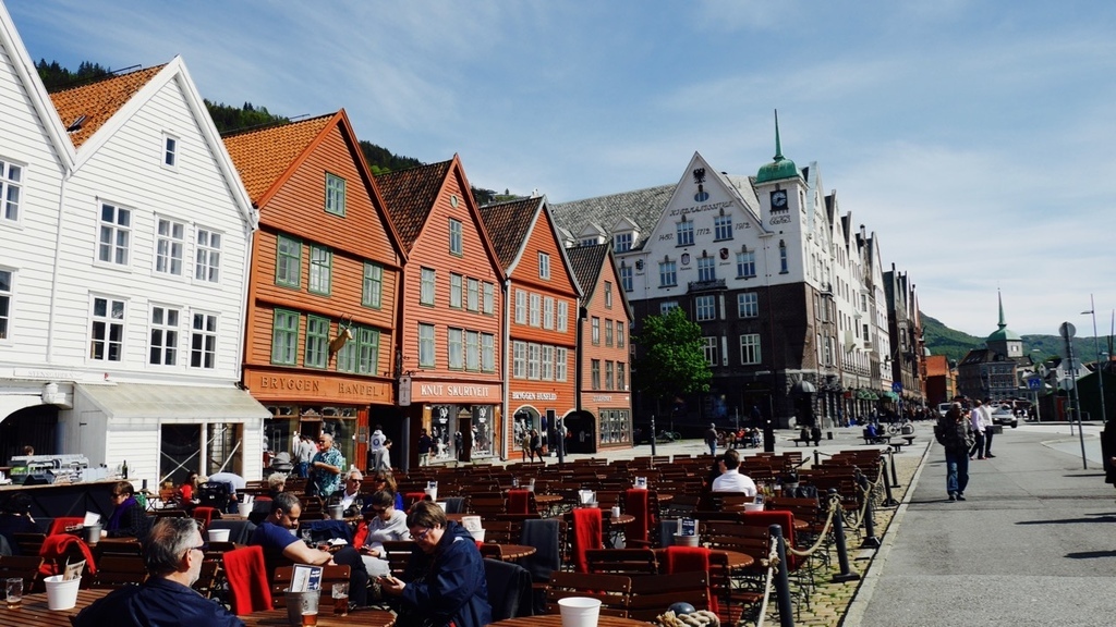 首圖的一排彩色房子是Bergen最著名的特色,Bryggen木造建築群。這裡已有七百年的歷史,是相當珍貴的文化遺產。但因為是木造的,所以中途也受過大火的侵襲,現在看到的都是後來根據當時的建築重新修整的樣貌。700年前的Bergen,被稱為「德國碼頭」,因為當時漢薩同盟期間,德國商人紛紛來此進行鱈魚的交易,他們就住在這些木屋群裡,而後,這些房子也成為了挪威地下抵抗納粹的聚集地。這些建築物紀錄了歷史。在歐洲旅行,開展了我對建築方面的見識與感嘆。歐洲人對待古蹟都是抱持尊重並驕傲的態度,反觀亞洲,一心想要改革想要都更想要一個現代化城市,古蹟不要說保存了,拆都來不及拆。這的確是十分可惜的部分。因為建築除了反映美學之外,也同時反映了當時人民的生活方式與價值觀。