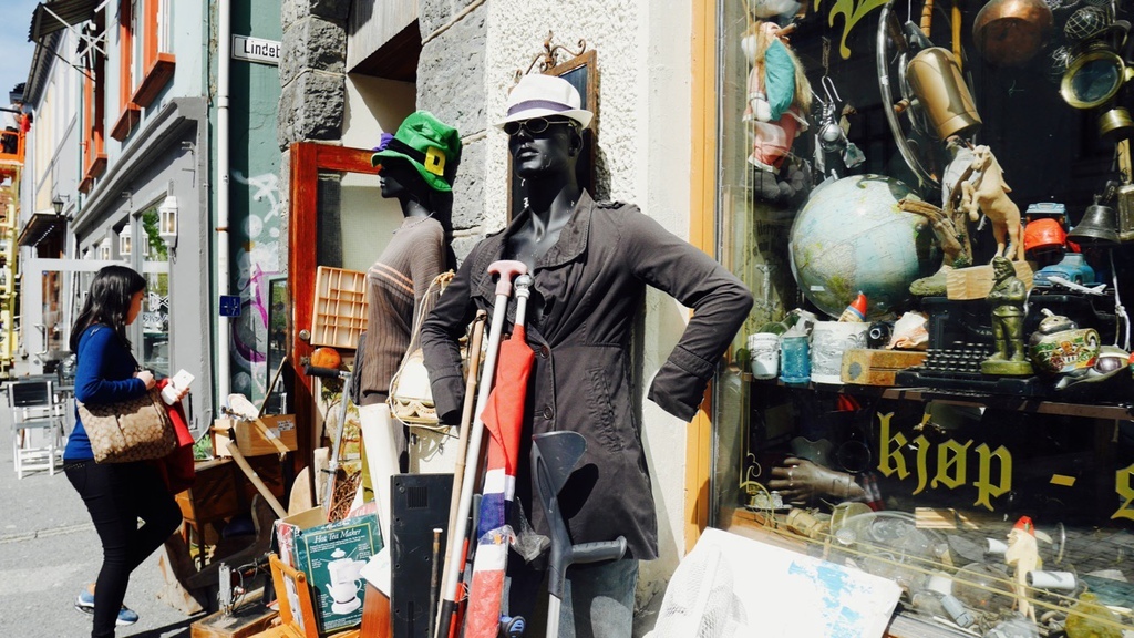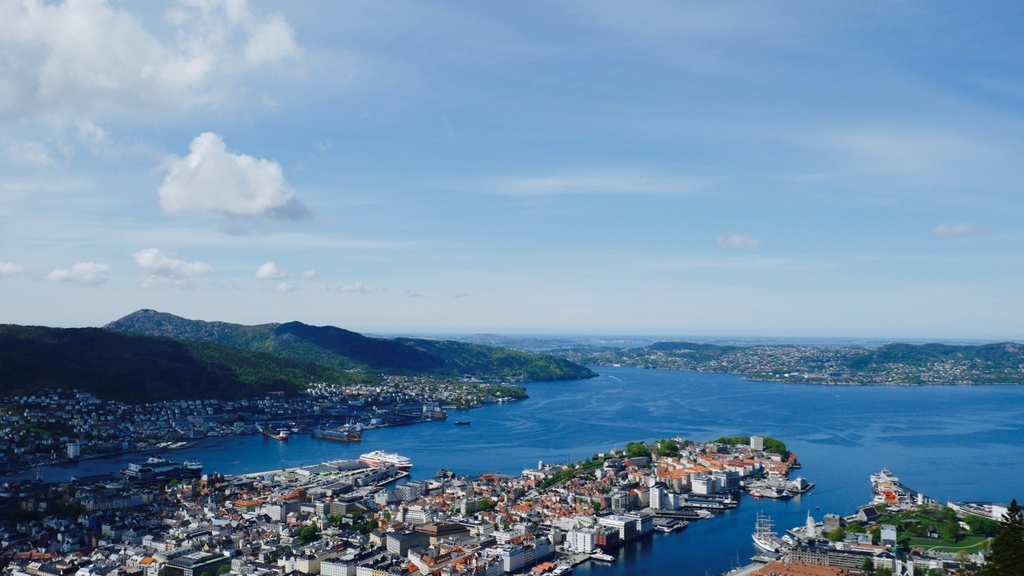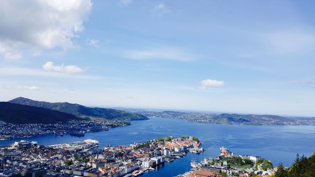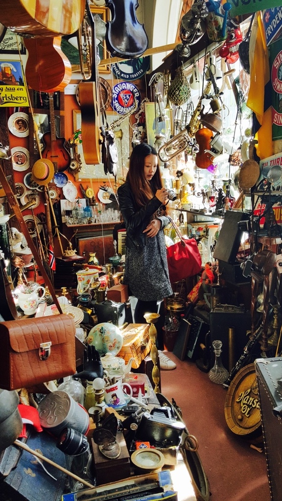在Bergen的第二天,我們的首要行程就是要去搭纜車。因為到Bergen旅遊,搭纜車上佛洛伊恩山(Mt. Fløyen)絕對是個不可錯過的體驗。在山上,你可以完整地把這個峽灣城市盡收眼底,看房子怎樣沿著海岸線排列,又怎樣慢慢的向外延伸,哪裡是最熱鬧的區域,哪裡又渺無人煙。從這麼高的視角俯瞰,你可以更深刻的體悟這個城市的美。那天老天爺很賞臉,給了我們一個晴天。上山的時候坐纜車,下山時步行,約莫走一小時會到市中心。建議有時間的旅人也可以這樣安排,輕鬆又不遺漏任何風景。而且在下山時,經過了一間古董雜貨店,消磨了不少時間。逛這種店,就是要抱持著一顆尋寶的新,如果太有目的性反而很容易失望。