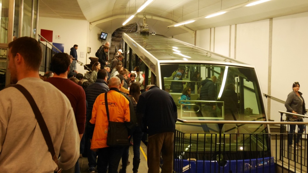 準備搭纜車囉。是大型的纜車,所以有時候會沒座位,不過一下就到了,所以稍微站一下也沒關係。