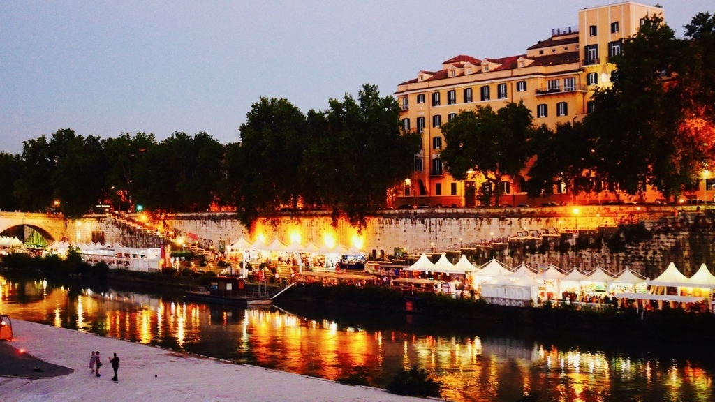 今天,又回到了好久不見的羅馬,帶大家去逛一下義式style的夜市,一個夜間的夏日市集,位於台伯河畔,提到台伯河,就不能錯過台伯島。(就是圖中的左邊房子佔地的地方)自古羅馬時期以來,該島就以兩座橋樑連接羅馬的其他部分,有一個傳說是在公元前510年,暴君盧修斯-塔克文-蘇佩布倒台後,憤怒的羅馬人將他的屍體扔進台伯河,他的屍體沉到海底,污物和淤泥開始累積在周圍,最終形成台伯島。也因為這個負面傳說,以前人們都會避開這裡,只將嚴重的罪犯和傳染病患者送到這。不過後來這裡蓋起了神廟,情況開始改變。