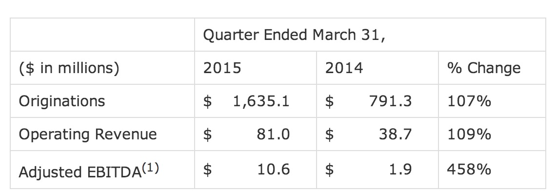 刚刚发布2015年Q1季报的LC美股EPS 0.02美金,高于预计的0.01美金。收入增长109.3%,达到8100万美金,超过预期526万美金。