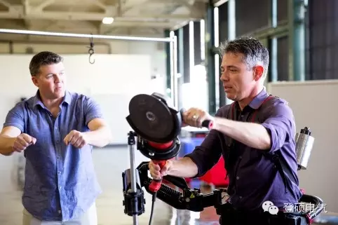 然而,工业外骨骼却不需要考虑这些。因为它们是无动力驱动的,依靠称锤和用于图像稳定器的标准弹簧臂。巧妙之处在于用户大腿处的碳纤维和金属框架,它们将手臂前端的重量通过外骨骼导入地上。