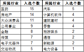 4)大部分集中在传统行业,比如医药、地产、金融、大众消费品(11家大众消费品有3家纺织公司,其中2家我做过审计J)和公用事业;新兴产业(比如新能源、传媒)仅11只,并不多(唯二之一的新能源是汉能薄膜发电…囧),具体如下: