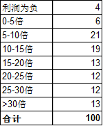 1)几乎都是有业绩的公司,亏损的公司只有4家,占比4%;
