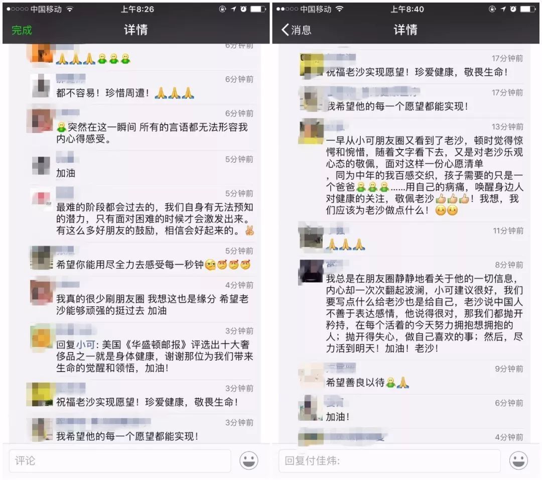 朋友小可把他的事情发在朋友圈,虽与他不曾相识,但陌生的人们纷纷送上祝福和鼓励的话语……