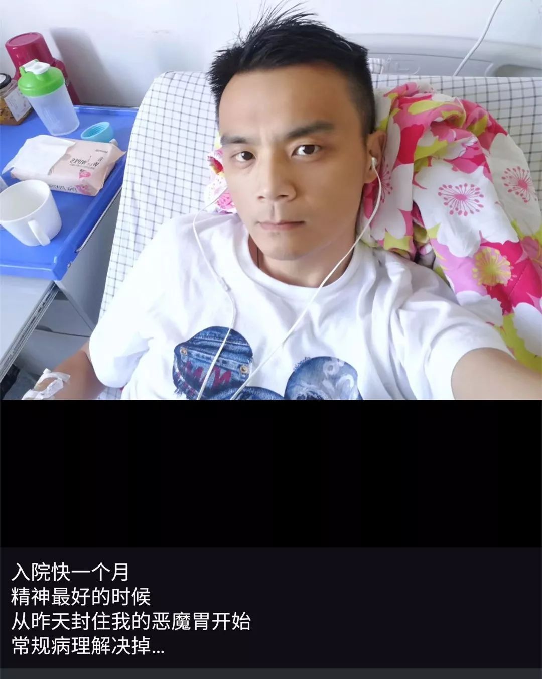 他会发在病房的自拍照,定期给朋友们报平安,告诉大家自己身体状况和治疗进展。