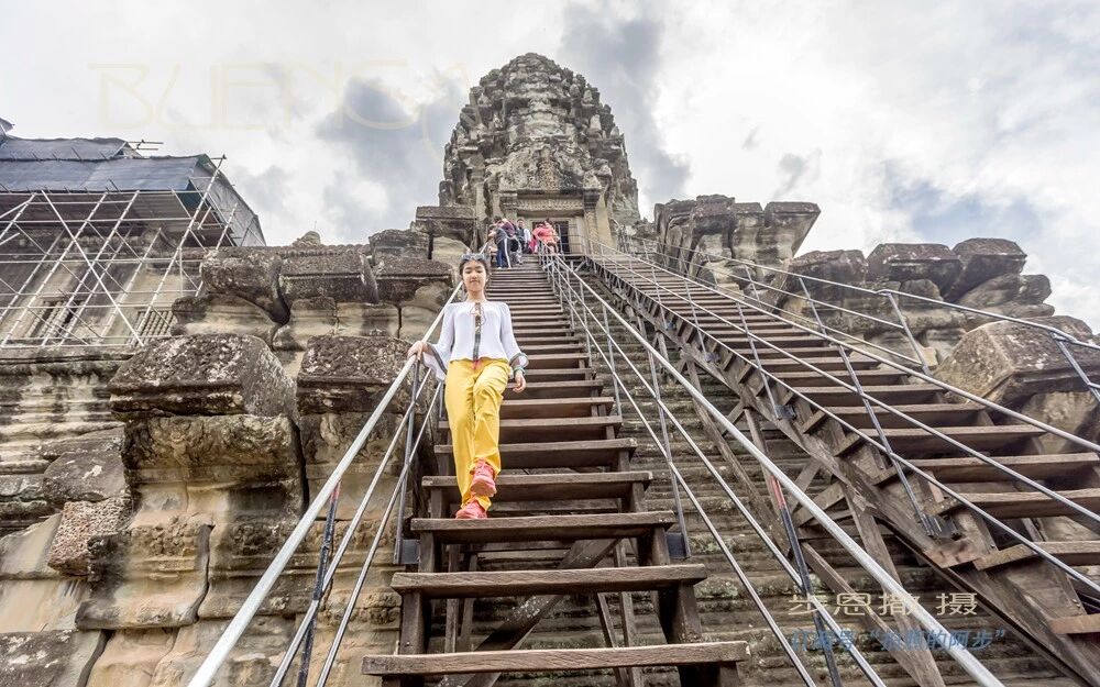我2005年来吴哥窟的时候,还能站到此处拍照,现在很多地方都已经被拦了起来,只能在里面圈起来的线路中游览。原先需要手脚并用攀爬的石头台阶上也已经做好了木头扶梯,虽然上下方便了很多,但少了那份攀爬的艰辛,仿佛少了那份对吴哥窟的感悟。