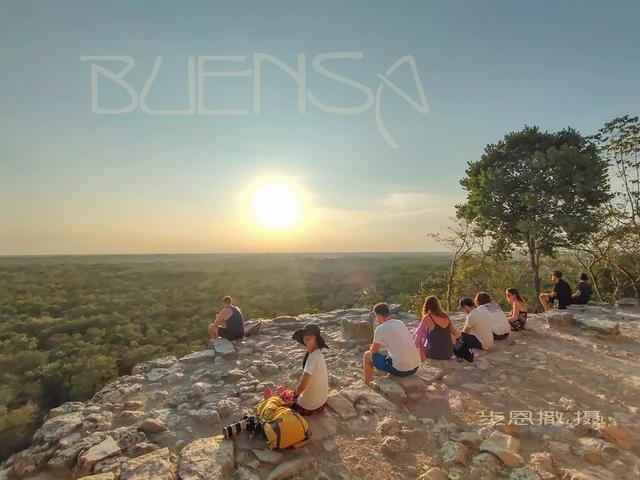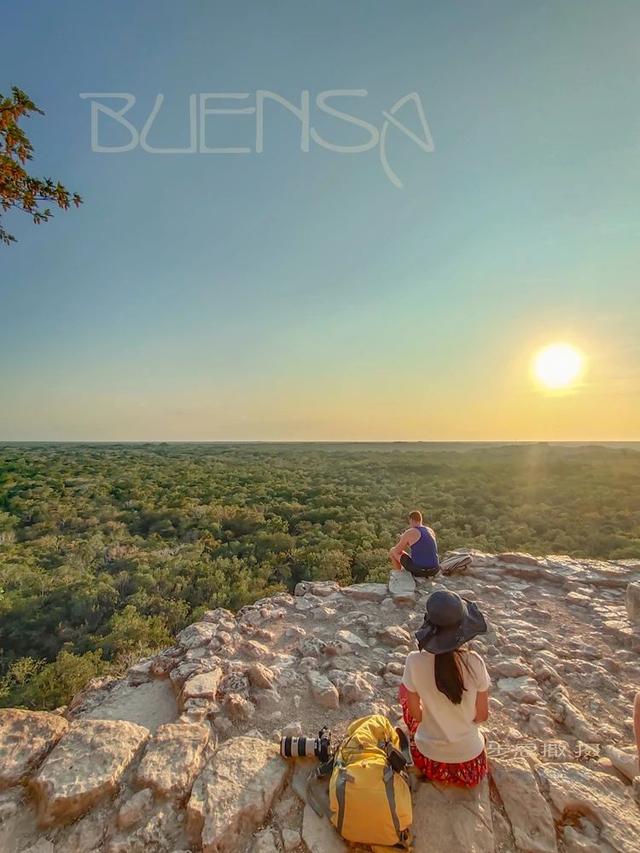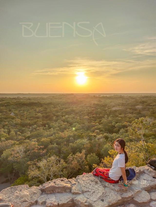 整个遗址内就我们寥寥几人坐在金字塔顶,看尤卡坦半岛的日落。
